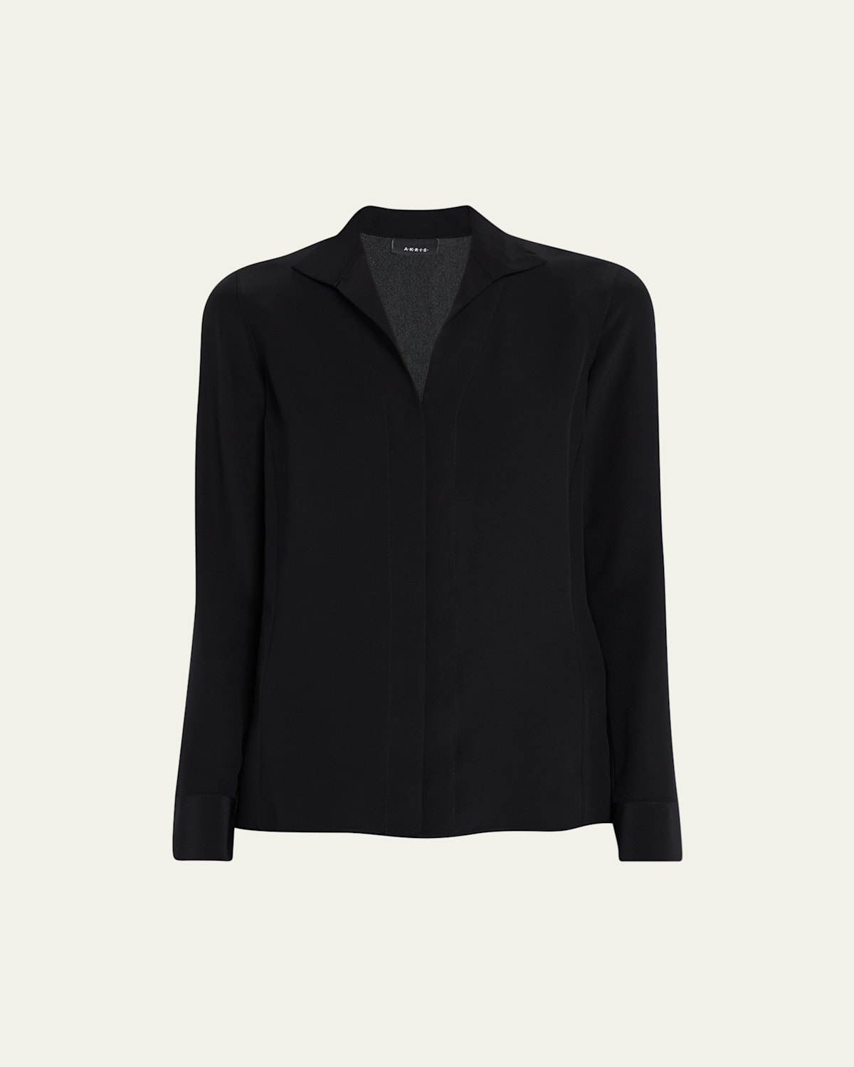 Akris shirt in silk chiffon. Stand collar; split neckline. Long sleeves; button cuffs. Relaxed fit. Hem hits hips. Silk. Imported.