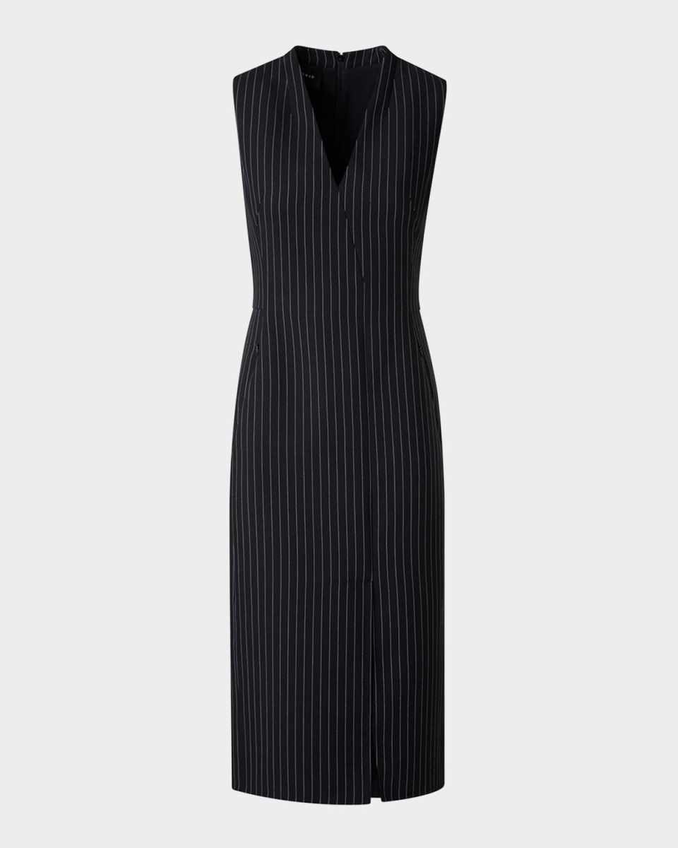 V-Neck Pinstripe Sleeveless Dress