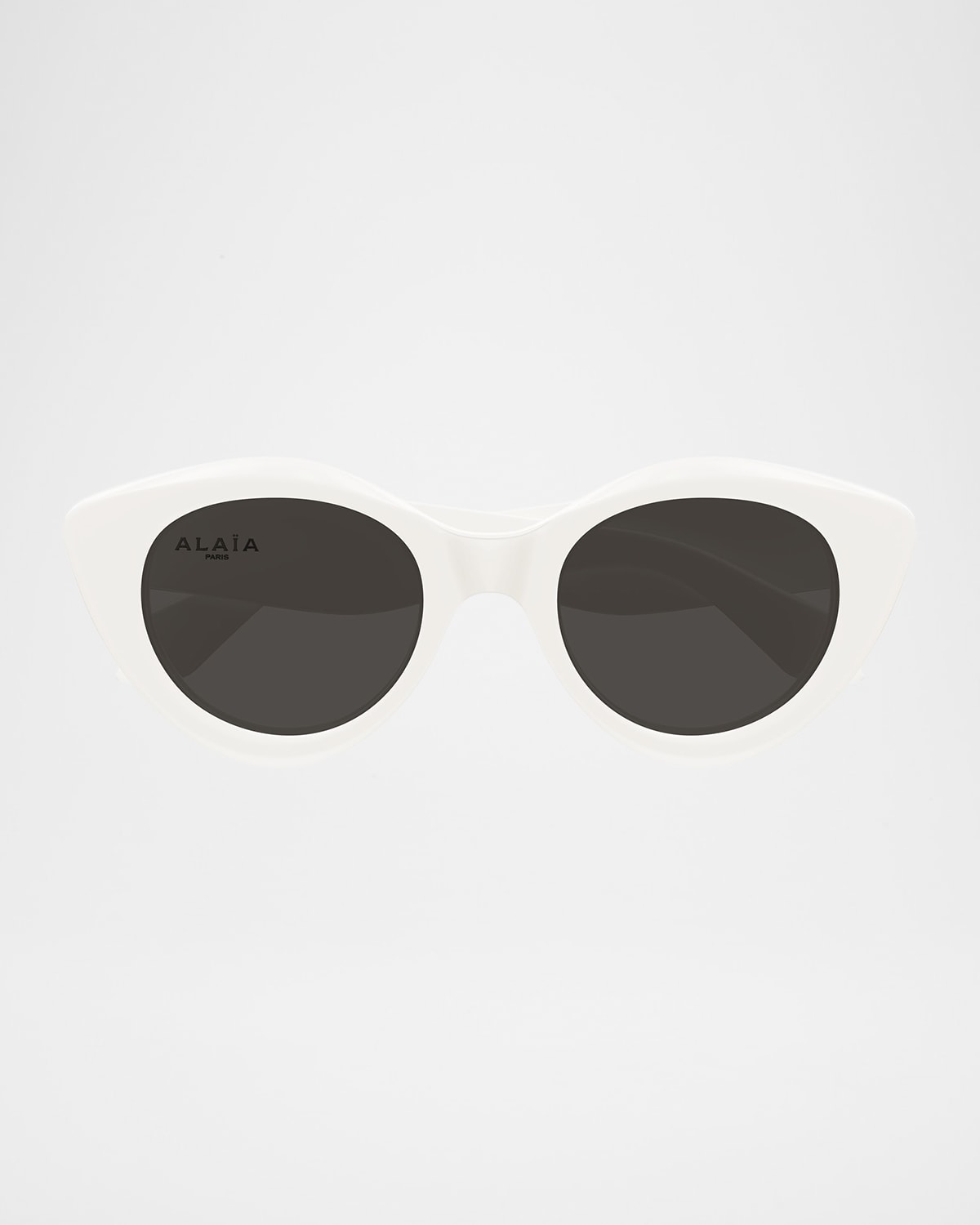 ALAIA "AA0091S" chic cateye sunglasses crafted of acetate Eye/bridge/temple (in mm): 5317145 Monochromatic lenses; logo script at left Saddle nose bridge Logo lettering at temples Wide, tapered arms Acetate 100% UVA/UVB protection Made in Italy