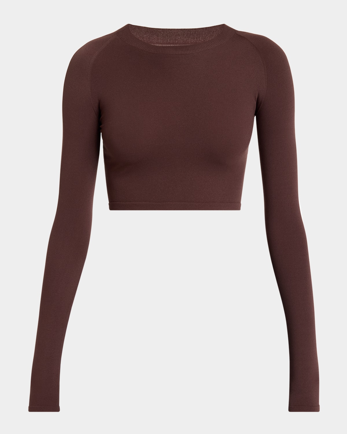 ALAIA top Crew neckline Long sleeves Fitted Cropped length Pullover style Elastane Dry clean Made in Italy