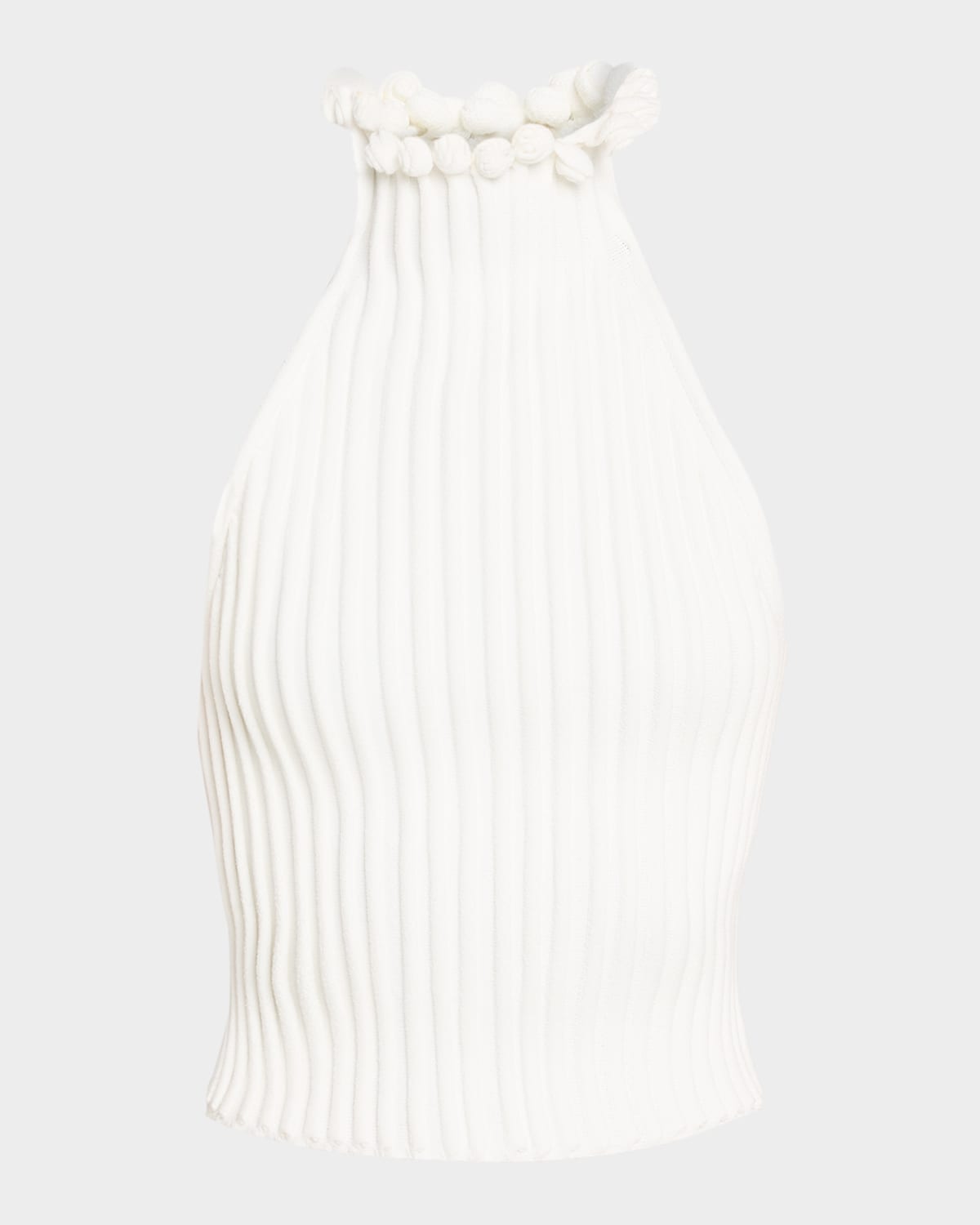 Designed in a sculpted ribbed stripe knit, this top by ALAIA has tonal curled trimming details along the neckline for a statementmaking finish Halter neckline Sleeveless Slim fit Cropped length Invisible back zipper Viscose/polyester/nylon/polyamide Dry clean Made in Italy