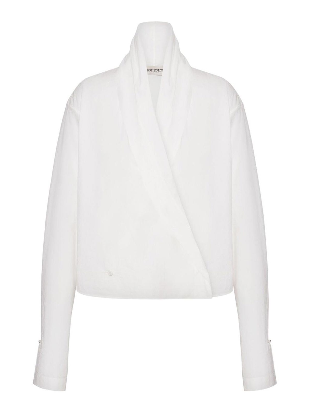 Blouse en coton d'Alberta Ferretti proposée dans une nuance de blanc raffinée avec un design en V, col et cache-caur rehaussé de manches longues pour un look simple et intemporel Blouse Alberta Ferretti en V blanc, design cache-cou, manches longues, design féminin et minimaliste