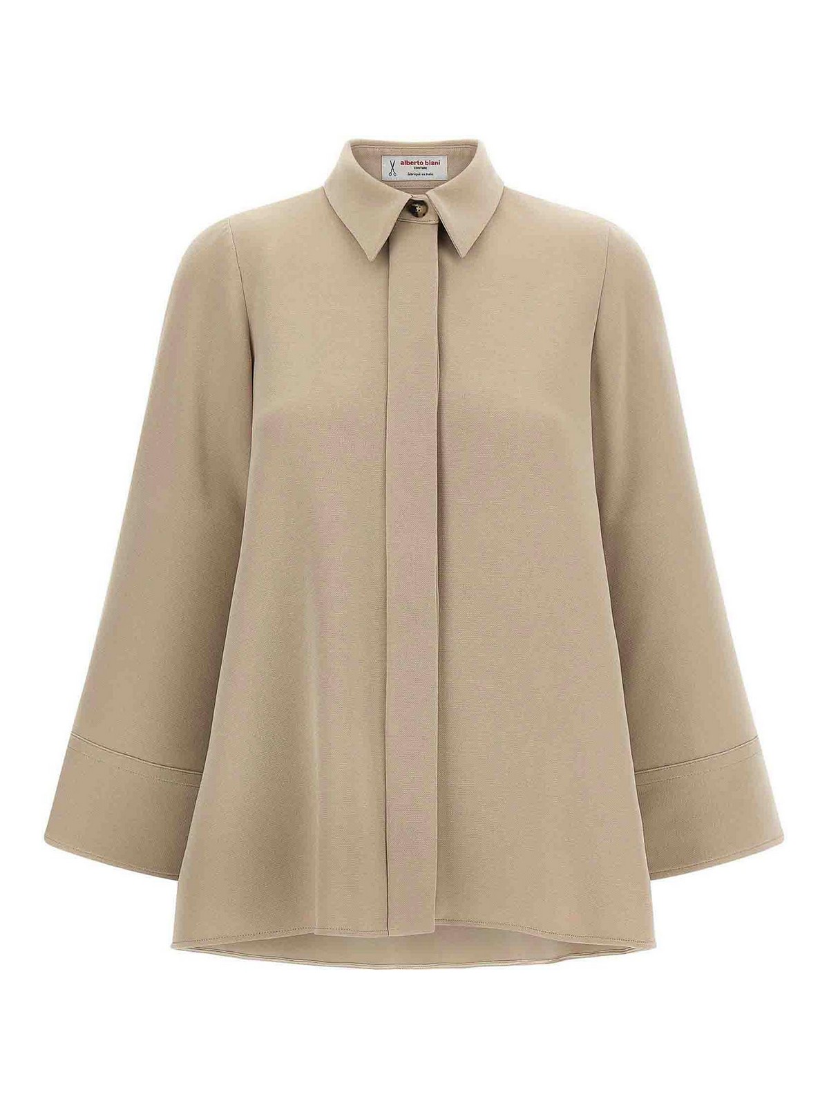 Chemise Caby à boutons dissimulés, manches 3/4 et ourlet asymétrique