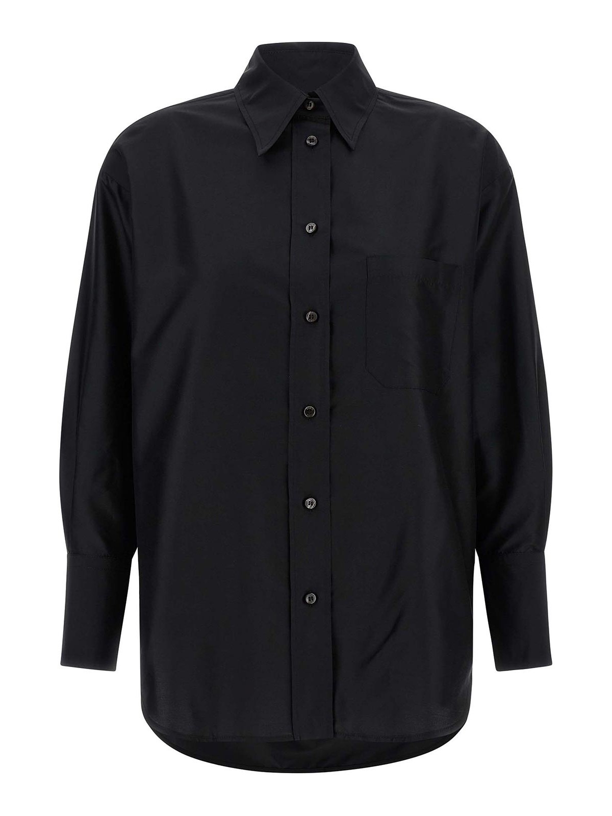 Chemise en soie avec poche poitrine boutonnée, manches longues avec poignets et épaules tombantes, ourlet asymétrique