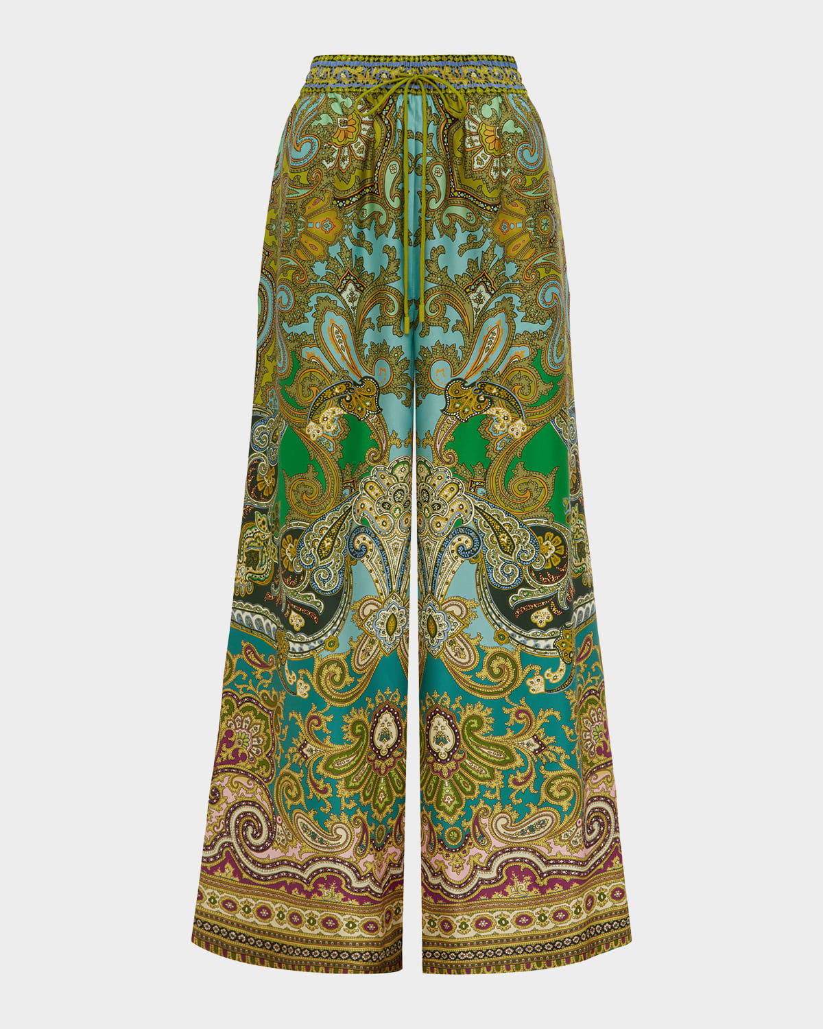 Illustrated with an eyecatching multipattern print, these lustrous silk pants by ALEMAIS are cut for a flowy, relaxed silhouette Approx. 37" inseam Highrise drawstring waistband Side seam pockets Full length Wide legs Pullon style Silk Imported