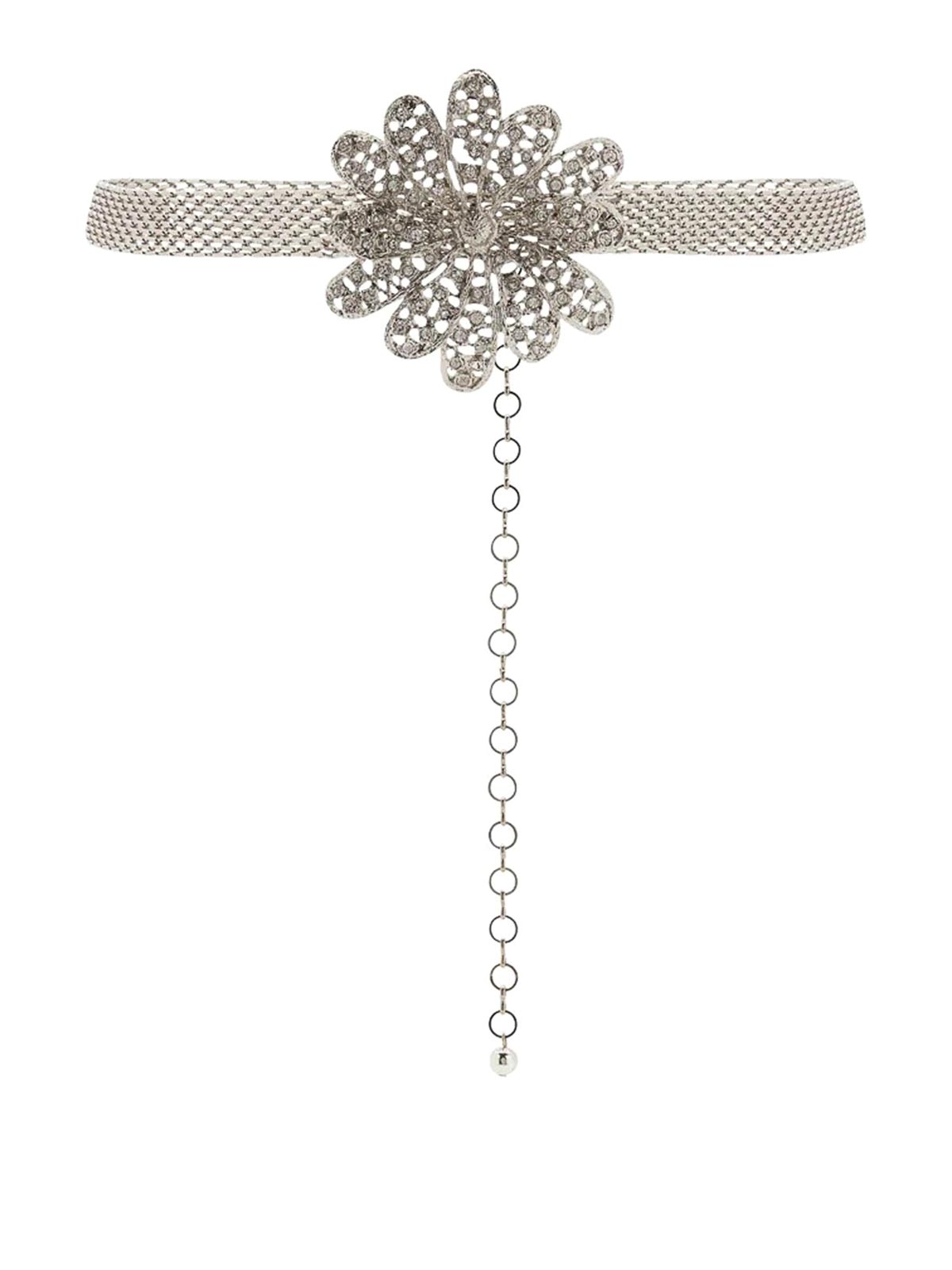 Alessandra Rich est une marque de vêtements pour femmes qui ne suit pas les tendances. C'est une idée de la féminité sans stéréotypes, une communauté de femmes qui aiment s'amuser avec les vêtements. chaque collection célèbre les femmes, car la femme est le sujet principal d'Alessandra Rich, alliant élégance, ironie et confiance. s'habiller pour le plaisir est sa philosophie. cette philosophie est parfaitement représentée dans la collection de bijoux. La ceinture à marguerites est le complément parfait pour une tenue simple. Couleur design: argent foncé, ceinture à chaîne, décoration en forme de marguerites, détails argentés.