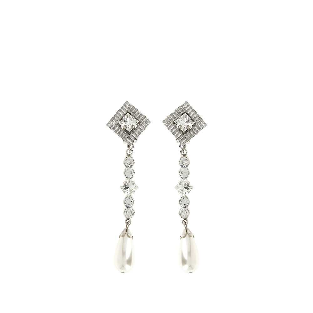silver-tone crystal embellishment faux-pearl embellishment drop design clip-on closure These earrings come as a pair.