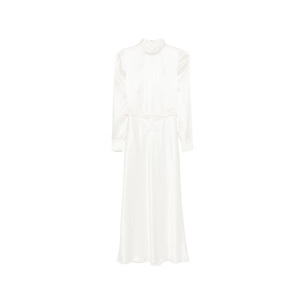 white silk ruffled trim self-tie fastening long sleeves buttoned cuffs
