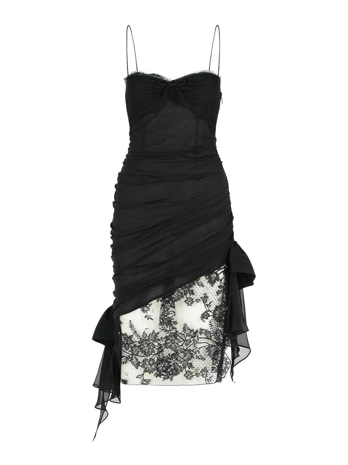 Naud décoratif en dentelle « georgette » à fines bretelles sur le côté avec fermeture éclair et crochet cachés, nauds latéraux décoratifs, ourlet asymétrique en dentelle