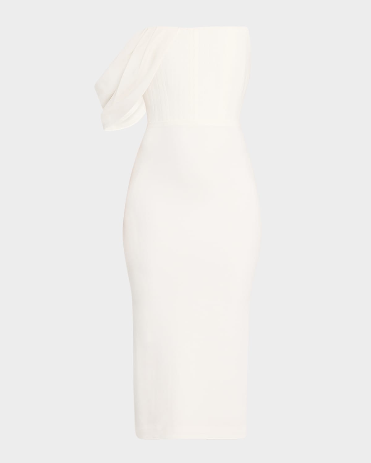 Draped-Sleeve Corset Crepe Midi Dress