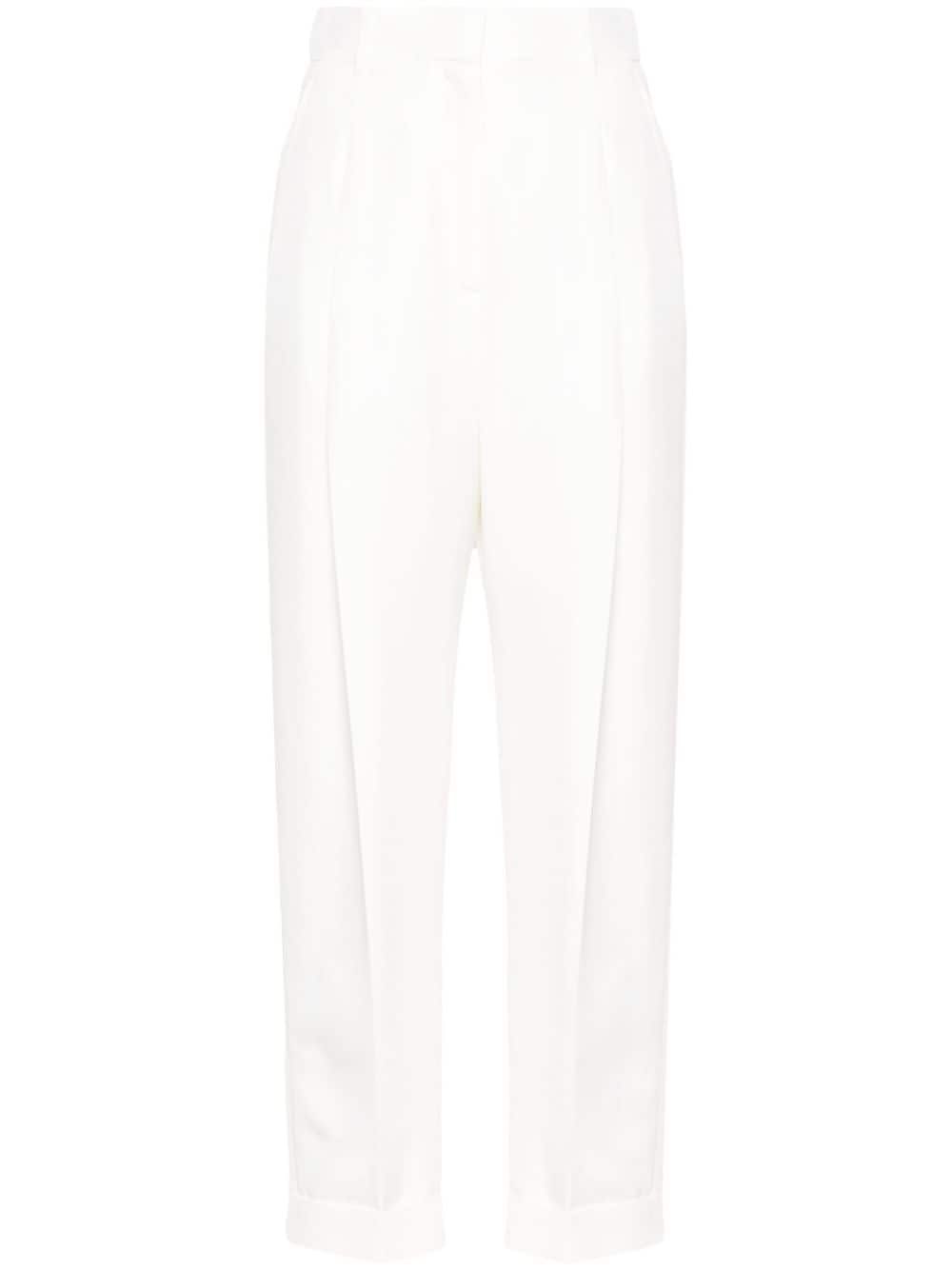 white cotton pleat detailing concealed front fastening slip pockets to the sides two rear welt pockets turn-up hem