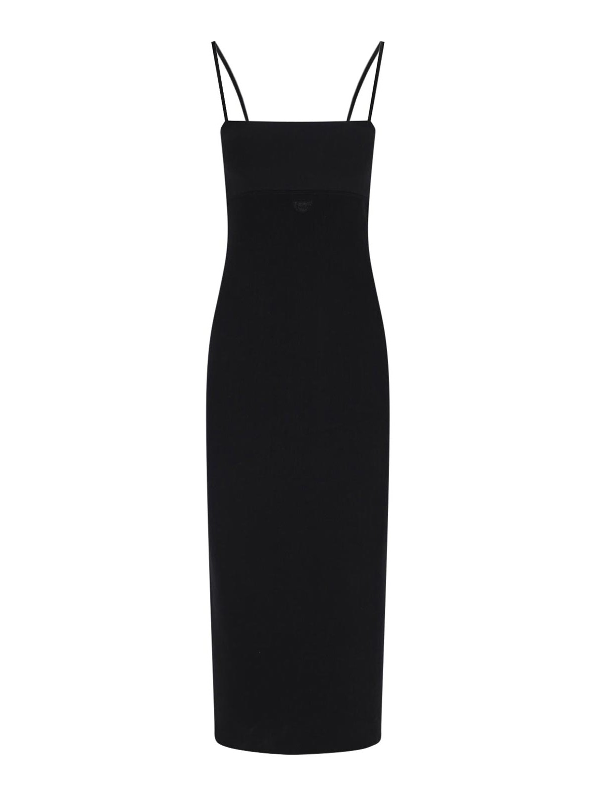 Robe Alexander Wang Midi Logo, en viscose noire mélangée, fines bretelles, logo en relief sur ton rétro, détail découpé rétro, ourlet droit.