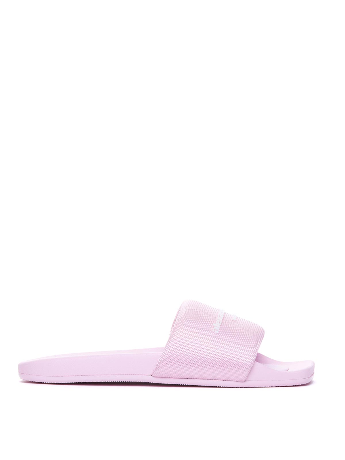 Sandales à glissière roses Alexander McQueen avec logo embossé sur le bout ouvert