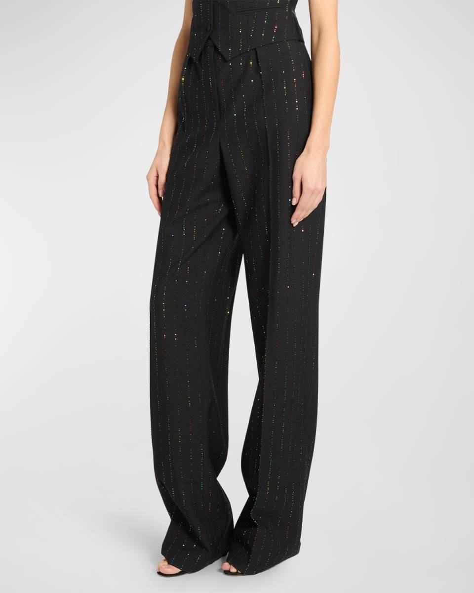 Sequin Embroidered Pinstripe Wide-Leg Pants