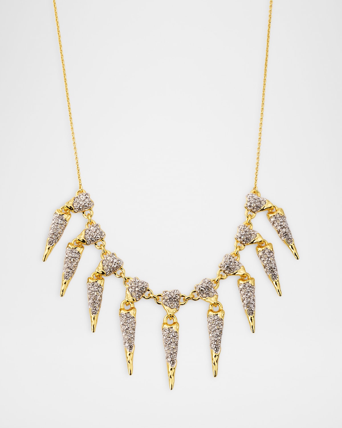 Crystalcovered fringe adorns the rolo chain of this Alexis Bittar necklace. Note the spearshaped dangles that create an edgy feel for a trendy fringe. Approx. 16" chain with 2" extender 14karat goldplated brass Rhodiumtoned plated brass Pavéset crystals Adjustable length Lobster clasp Lightweight (19g) To clean, gently wipe the surface with a soft cloth. Imported