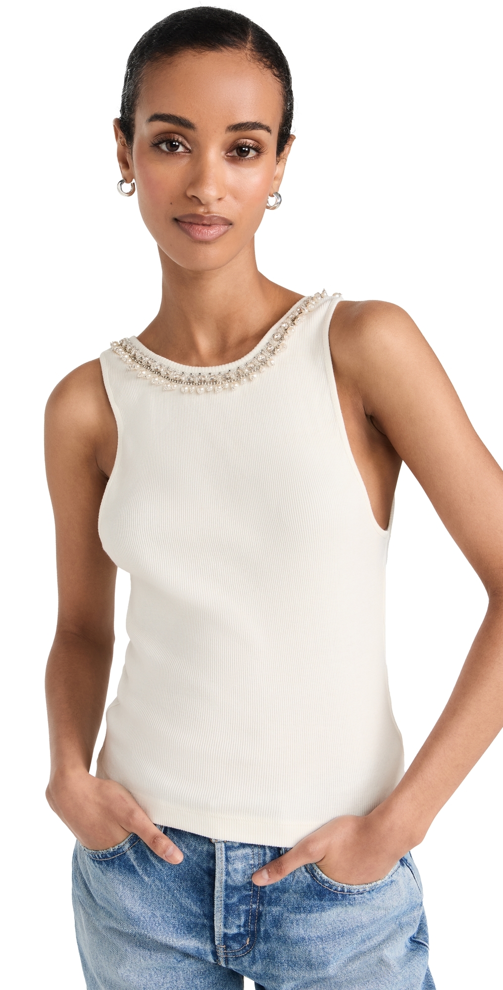 Fabric: Lightweight ribbed jersey. Faux pearl and crystal embellishments. Scoop neck and back. Shell: 100% cotton. Dry clean. Imported, India. Measurements: Measurements from size S Length: 20.5in / 52.0cm, from shoulder