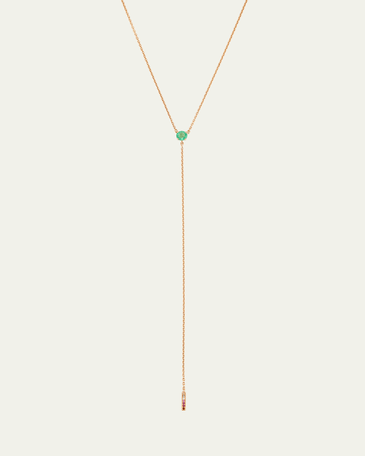 Alice Van Cal Ynecklace Necklace length approx. 1721 inches 18karat rose gold chain and settings Green emerald as the center pendant Drop pendant set with diamond, sapphire, aquamarine, ruby and garnet Emerald total carat weight: 0.45 Diamond total carat weight: 0.9 Adjustable length Lobster clasp Wipe clean Imported