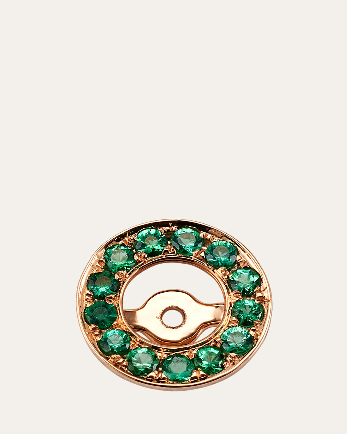 Alice Van Cal round earring halos Approx. 0.2" x 0.2" diameter Polished 18karat rose gold Green emeralds form halos Emerald carat weight: 0.35 Wear with solitaire stud earrings Halo pair only; earrings not included For pierced ears Wipe clean Imported