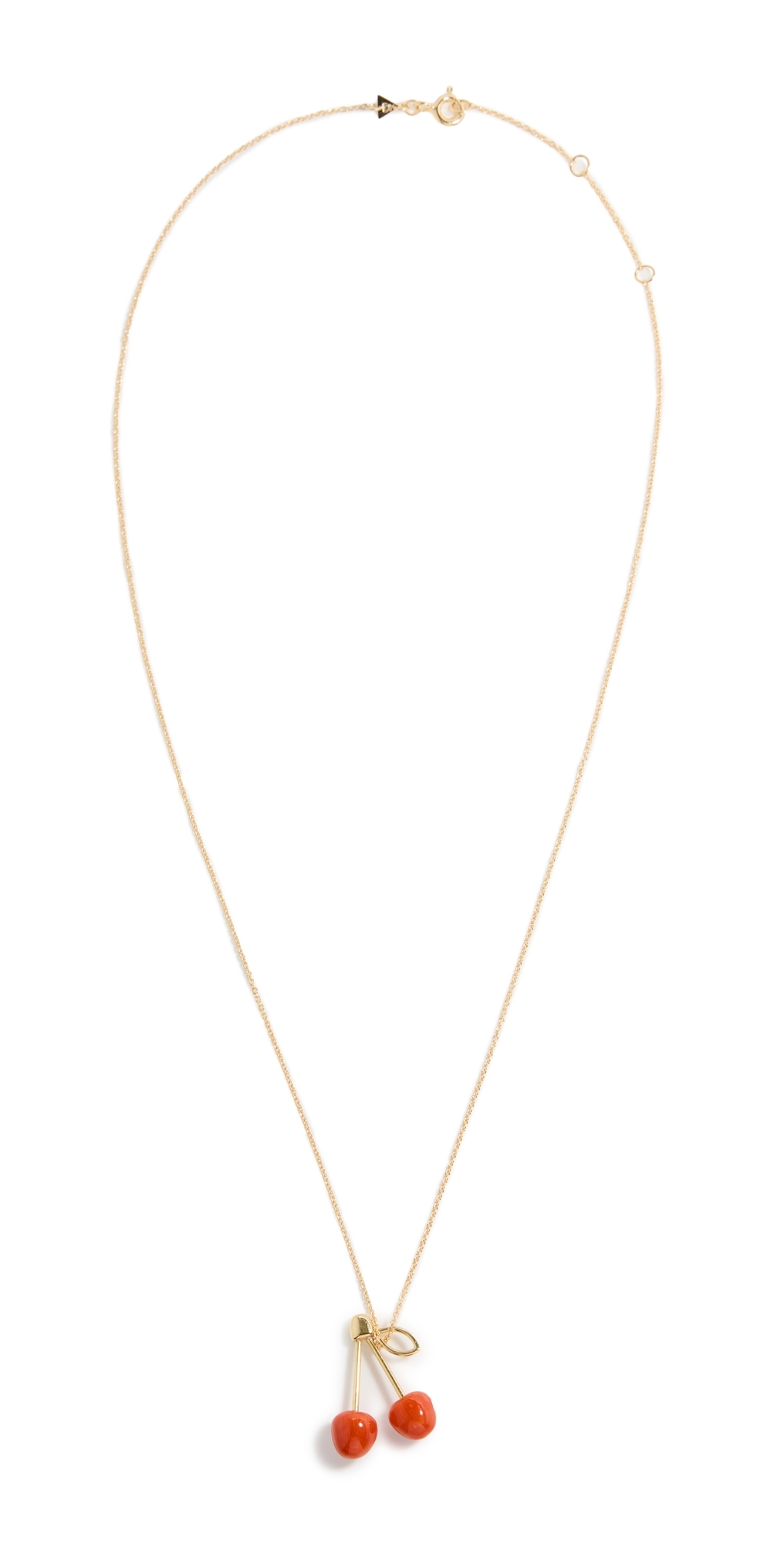 Cannot be shipped outside the USA Red coral seashell. Cherry charm. Gold. Ring clasp. Made in Italy. Measurements: Length: 15.75-17.25in / 40.0-44.0cm