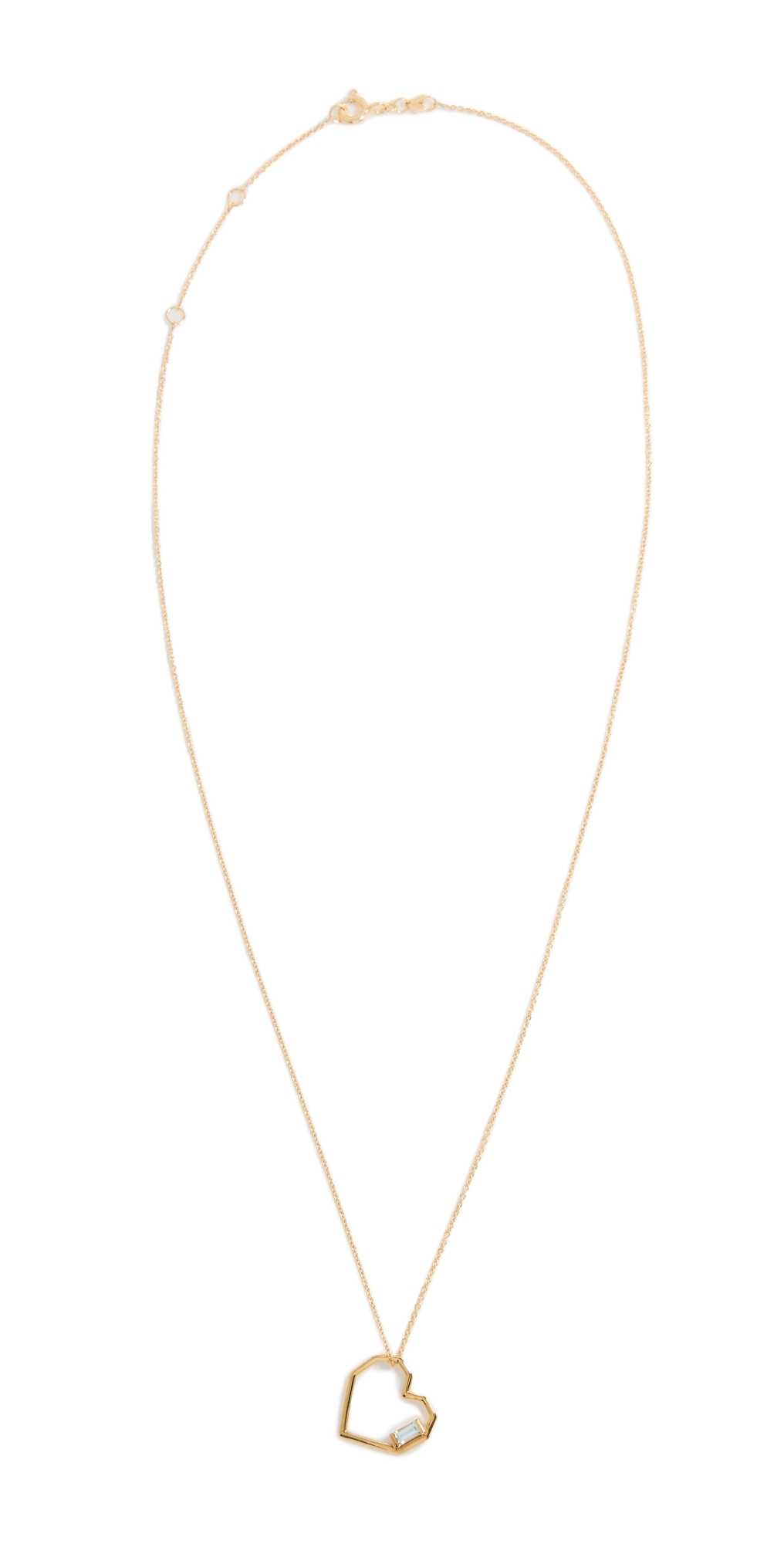 Heart charm. Aquamarine accent. Gold. Ring clasp. Made in Italy. Measurements: Length: 15.75-17.25in / 40.0-44.0cm