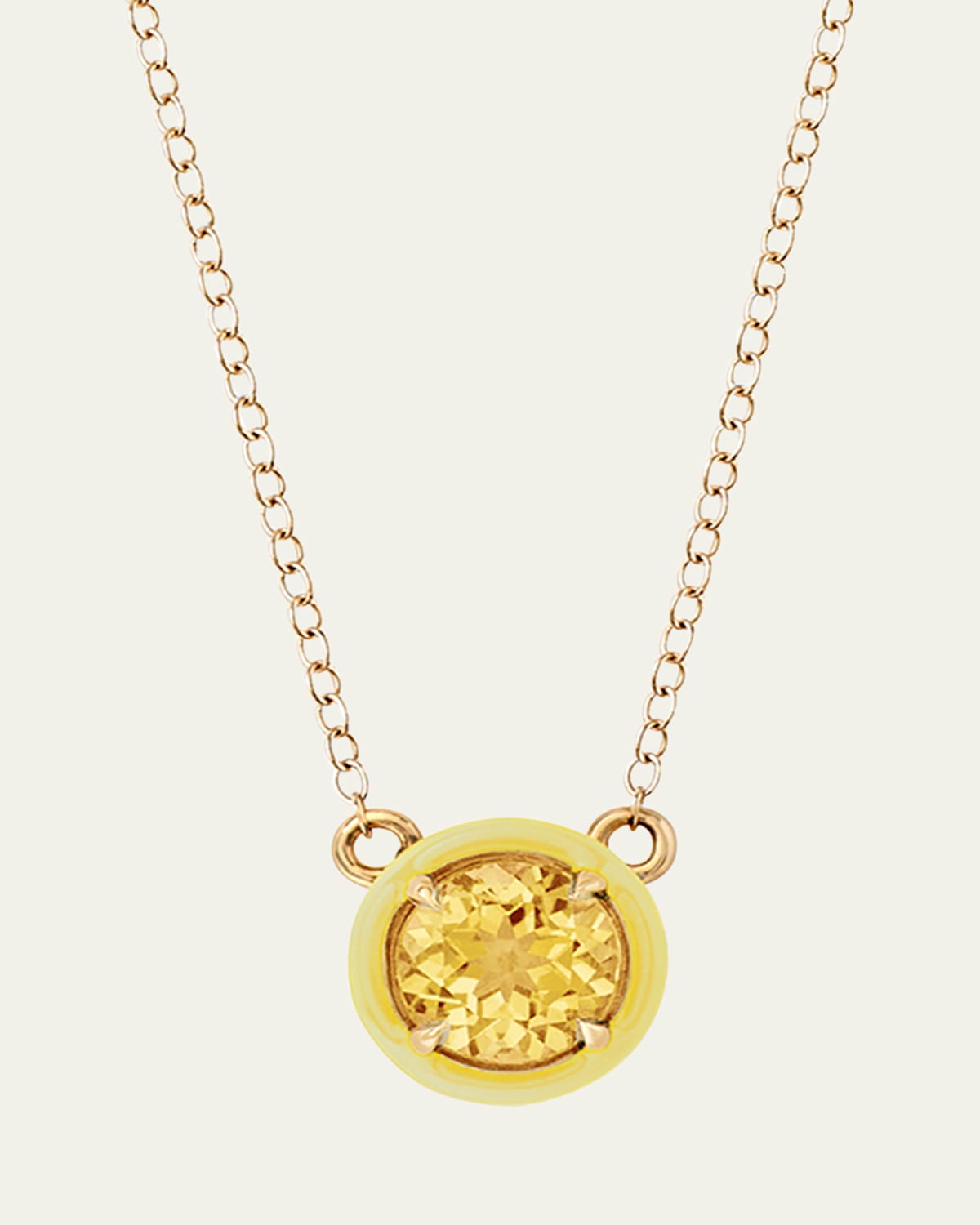 Round Cocktail Necklace with Citrine and Yellow Enamel in 14K Yellow Gold