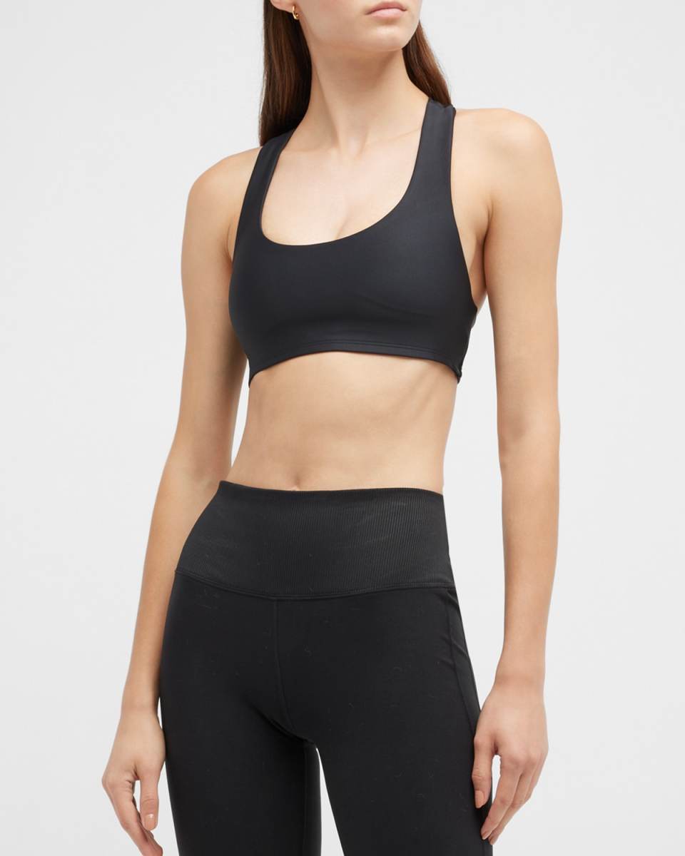Alo Yoga "Global Body" sports bra in signature Airlift fabrication Square neckline Banded under bust Removable soft cups Racerback Pullover style Polyester/spandex Machine wash cold, tumble dry Imported
