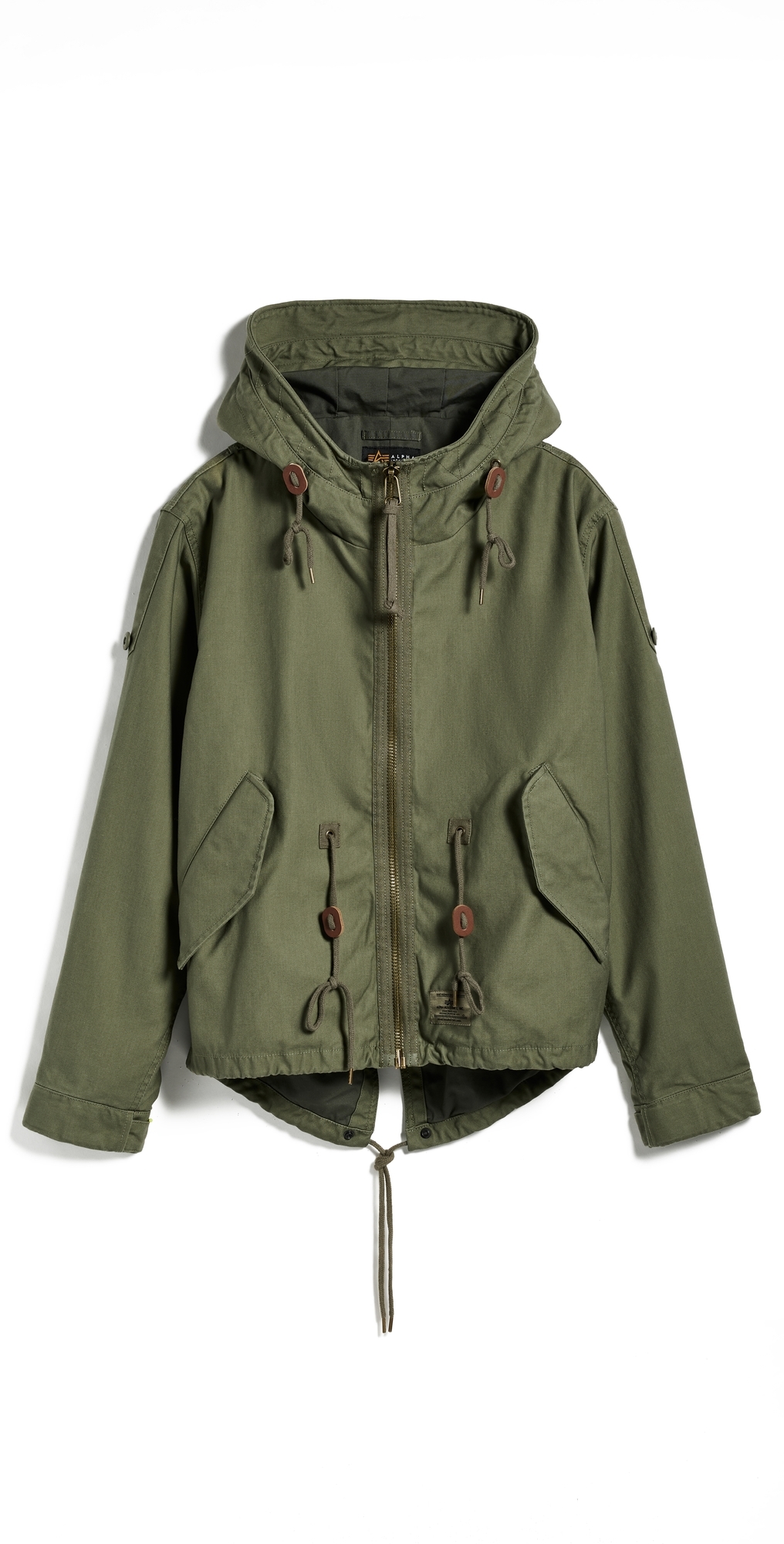 Fabric: Mid-weight, non-stretch canvas. Fishtail hem. Epaulettes at sleeves. Adjustable drawcord at waist and hood. Hooded neckline. Long sleeves with button cuffs. Zip at front. Flap front pockets. Shell: 60% cotton/40% polyester. Lined. Lining: 65% polyester/35% cotton. Wash cold. Imported, Brazil. Measurements: Measurements from size XS Length: 27.5in / 70cm Sleeve: 33in / 84cm Chest: 40.25in / 102cm