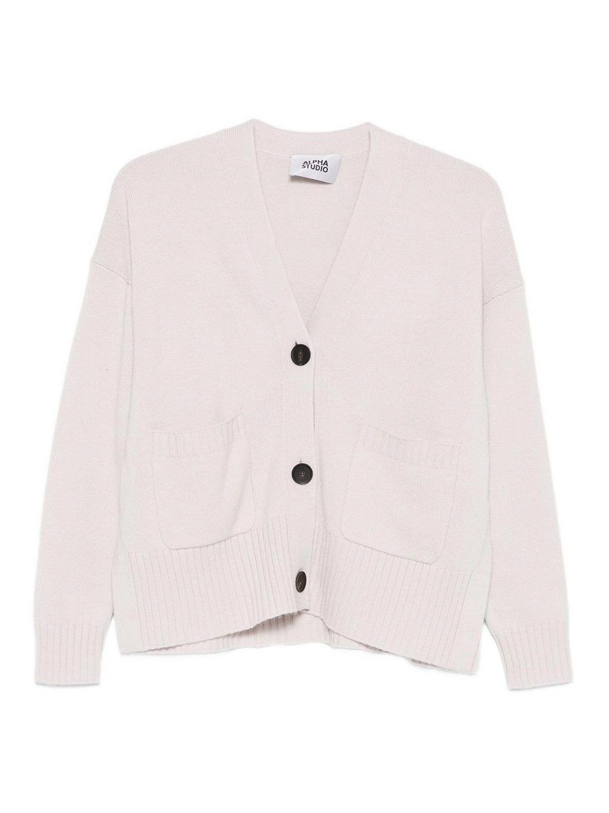 Cardigan gris côtelé et mélangé signé Alpha Studio