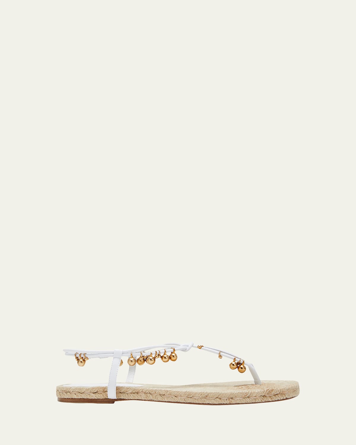 Baubles dangle from the leather cords of these flat Altuzarra sandals Twotone, chevronwoven jute heel Knotted thong strap Posted ankle strap Open toe Made in Spain