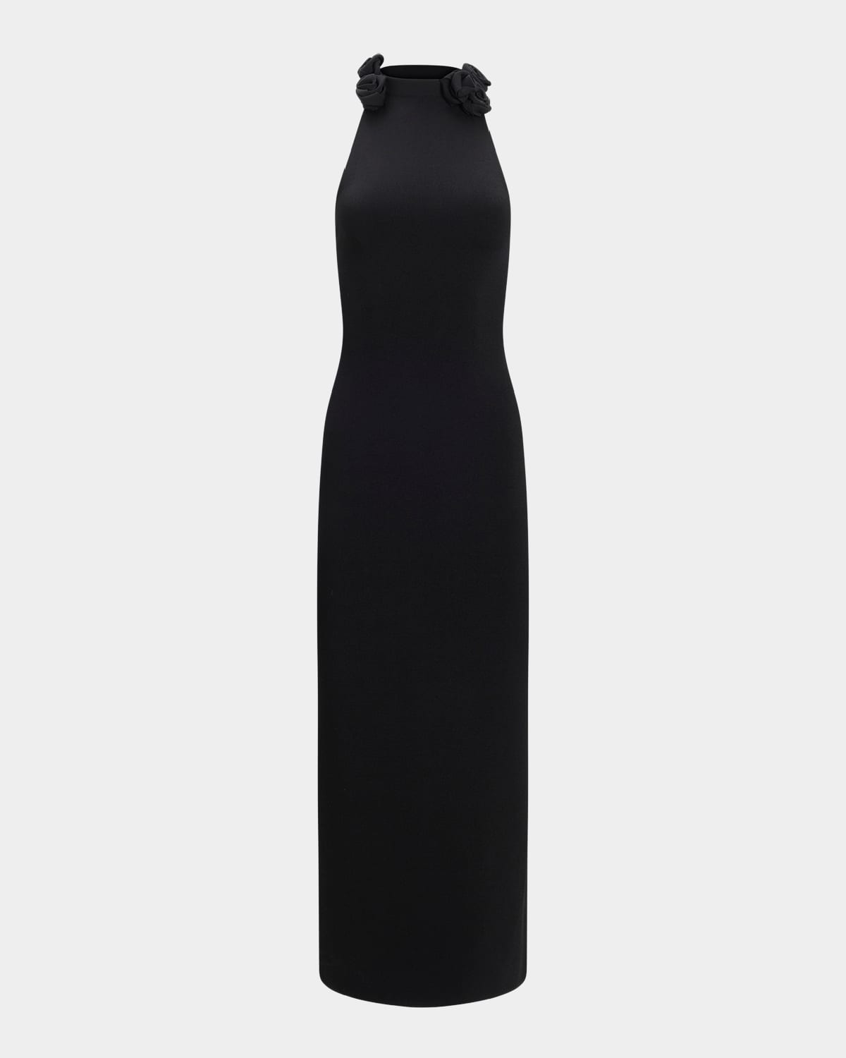 Altuzarra "Bonnaire" dress featuring rosette applique along the neck Mock neckline Sleeveless Sheath silhouette Hem falls below the knee Hook/keyhole back Viscose/polyester/nylon/polyamide Imported