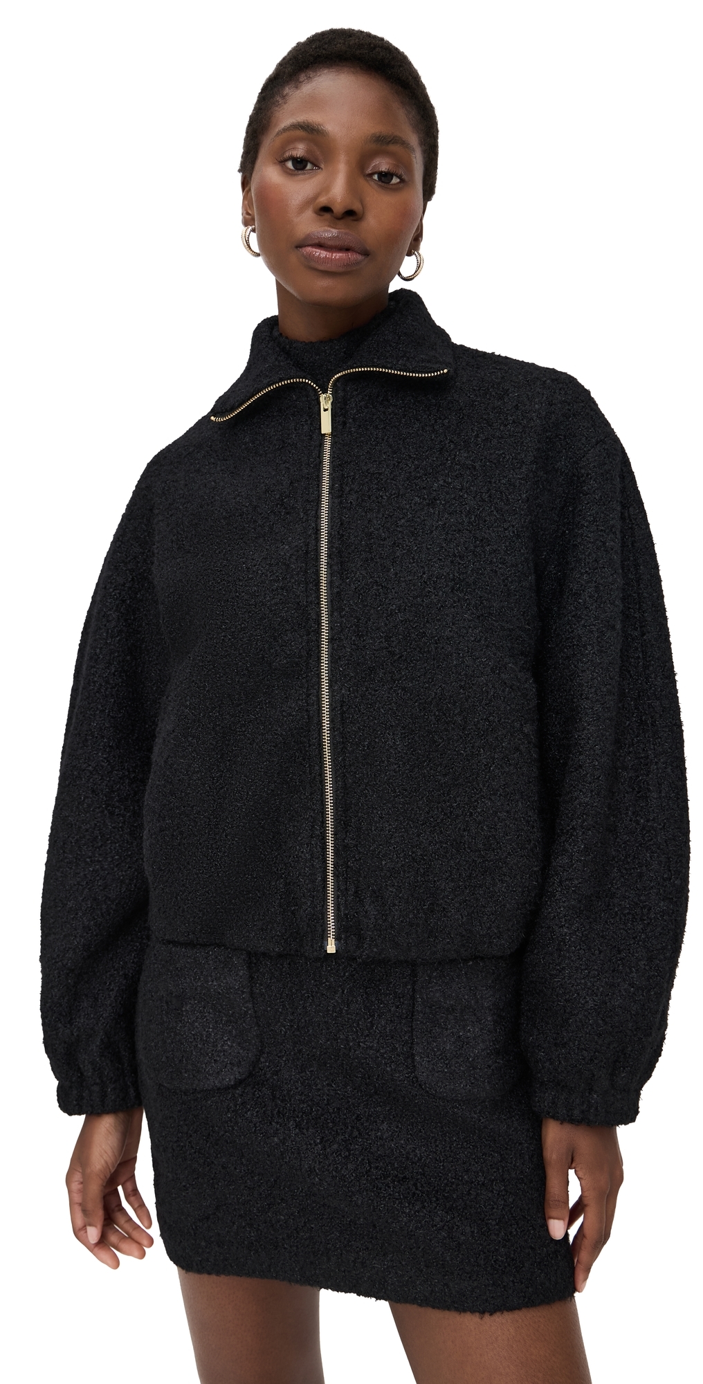 Fabric: Mid-weight, low-stretch faux sherpa. Collared neck. Long sleeves with elastic cuffs. Zip at front. Covered elastic waistband. Slant hip pockets. Shell: 100% polyester. Lined. Lining: 95% polyester/5% elastane. Dry clean. Imported, China. Measurements: Measurements from size S Length: 21.25in / 54.0cm, from shoulder