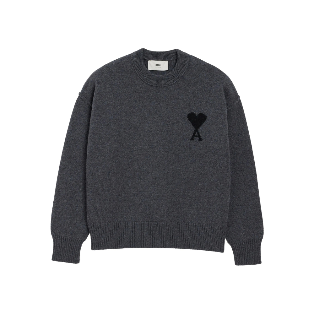 anthracite grey crew neck long sleeves ribbed cuffs and hem intarsia-knit logo
