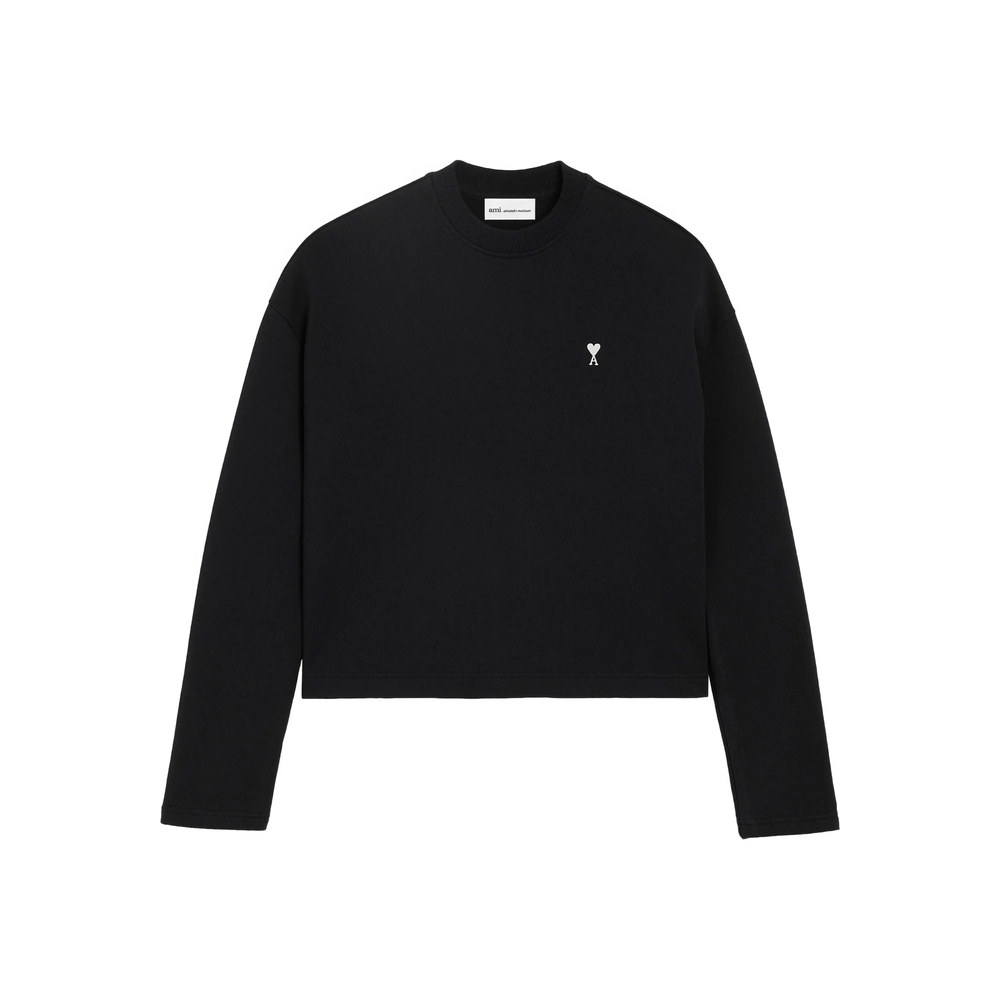 black logo detail cropped tonal ami embroidery under back neckline long sleeves round neck