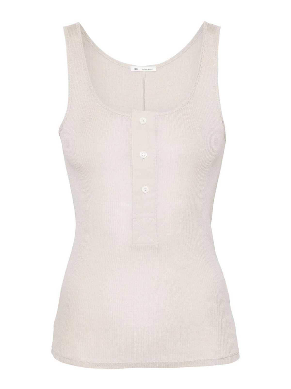 Patte de boutonnage écrue à col rond côtelé, sans manches, ourlet droit