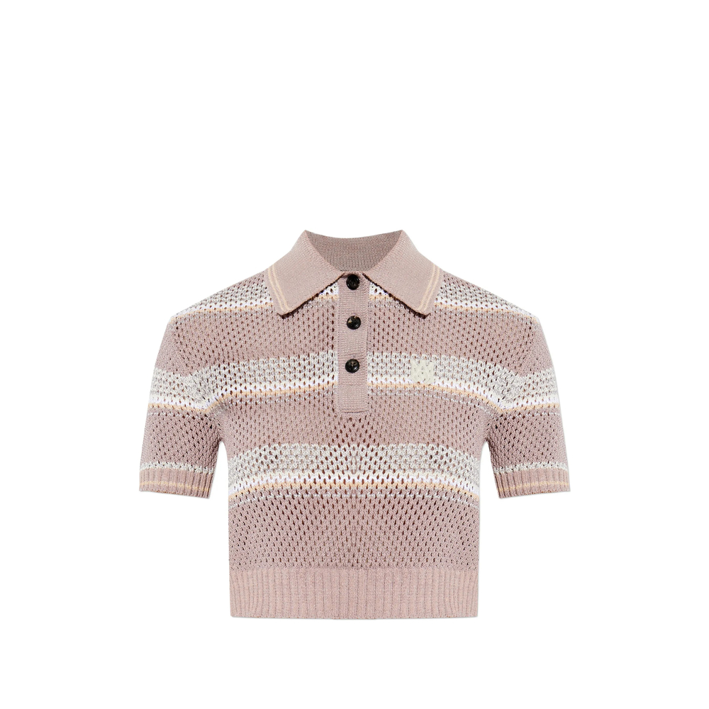 Striped Crochet-effect Polo Shirt