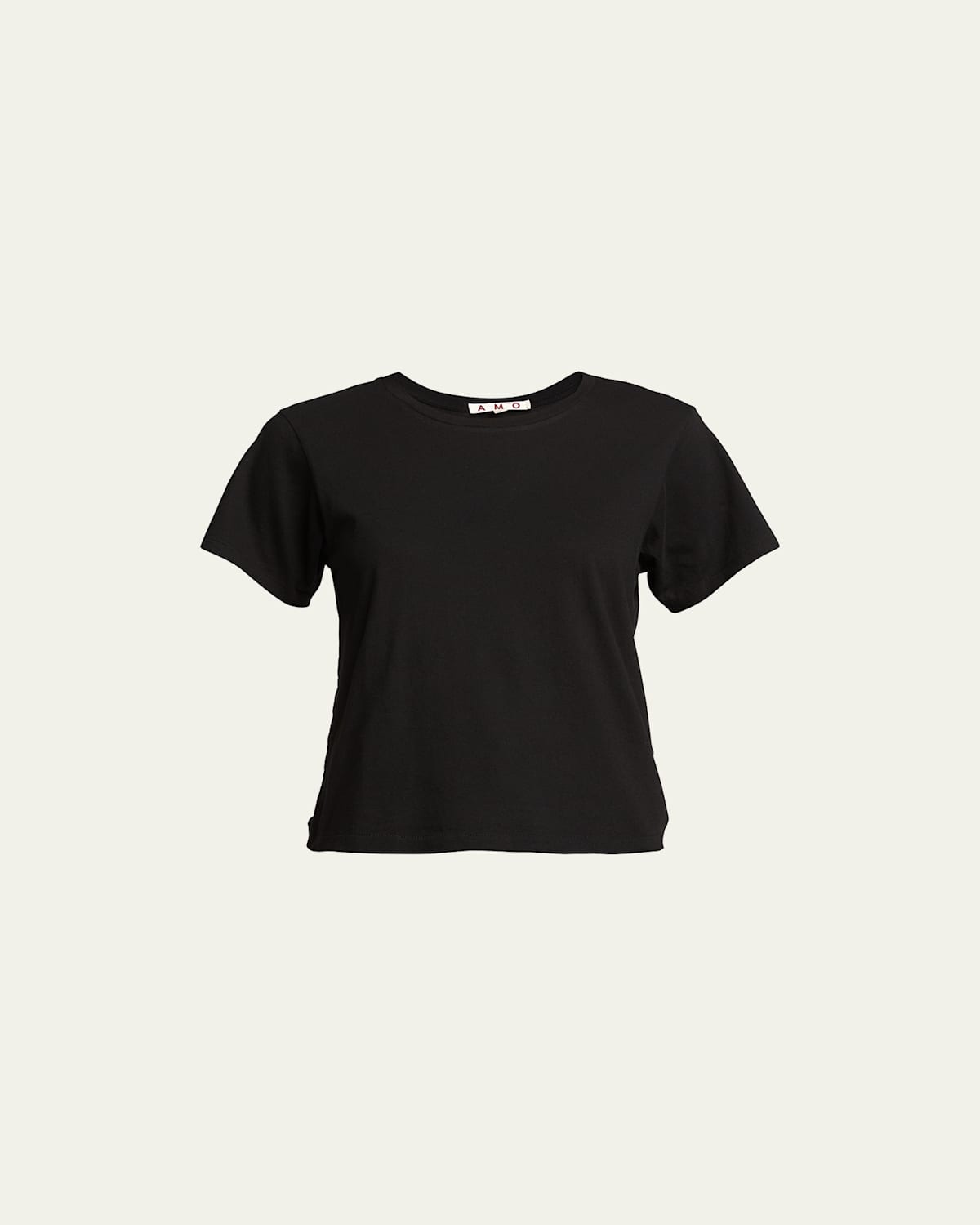 AMO Denim tee. Crew neckline. Short sleeves. Relaxed fit. Slipover style. Cotton. Made in USA.