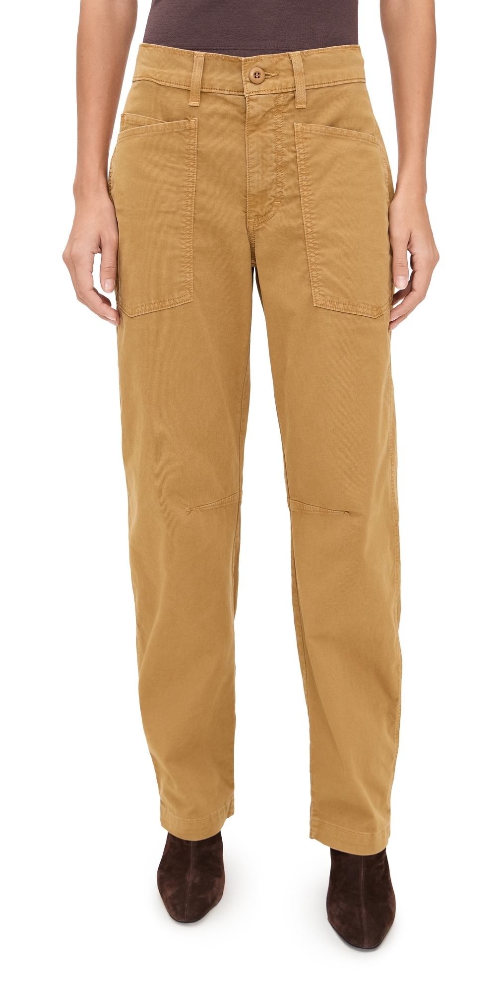 Fabric: Mid-weight stretch twill. Darted knees. Shell: 98% cotton/2% elastane. Wash cold. Made in the USA of imported materials. Measurements: Measurements from size 25 Rise: 9.75in / 25cm Inseam: 30.25in / 77cm Leg opening: 15.75in / 40cm