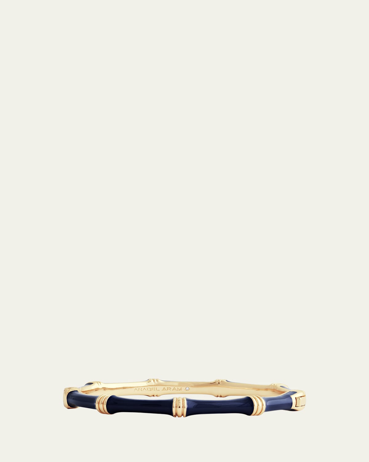 Anabel Aram Jewelry handcrafted bracelet from the Bamboo Collection Approx. 2.75" x 2.3" opening 18karat goldplated brass Handpainted enamel Cubic zirconia stones Hinged closure Imported