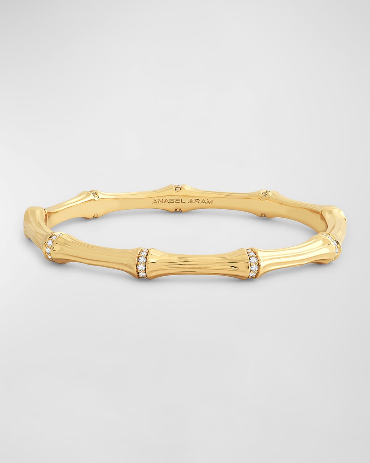 Anabel Aram Jewelry bangle 18karat goldplated brass Cubic zirconia stones Approx. 2."L x 2.4"W Hidden clasp closure Imported