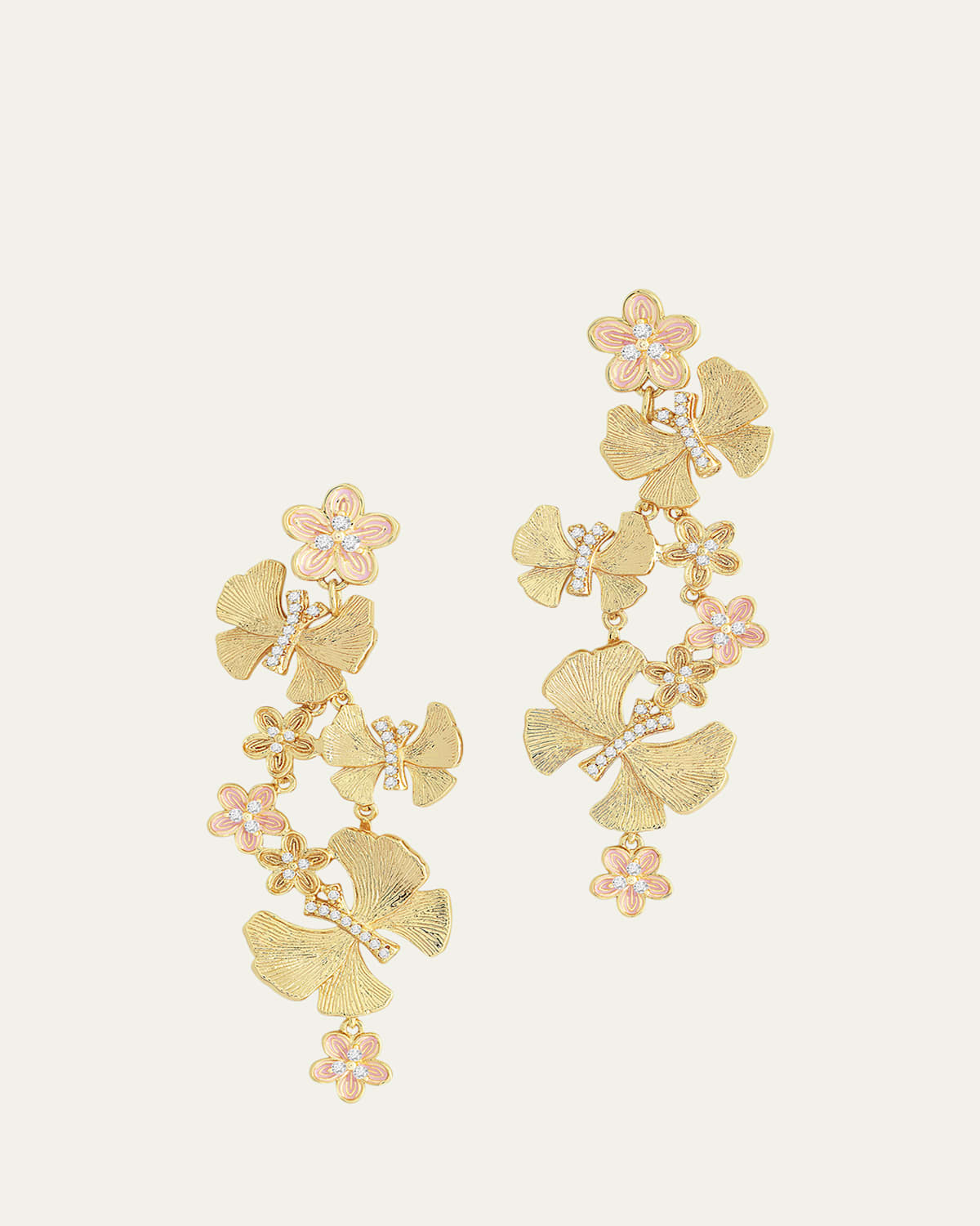 Anabel Aram Jewelry earrings from the Butterfly Collection Approx. 2.4" length x 1" width 18karat goldplated brass Butterflies and enameled flowers Cubic zirconia stones as accents For pierced ears Imported