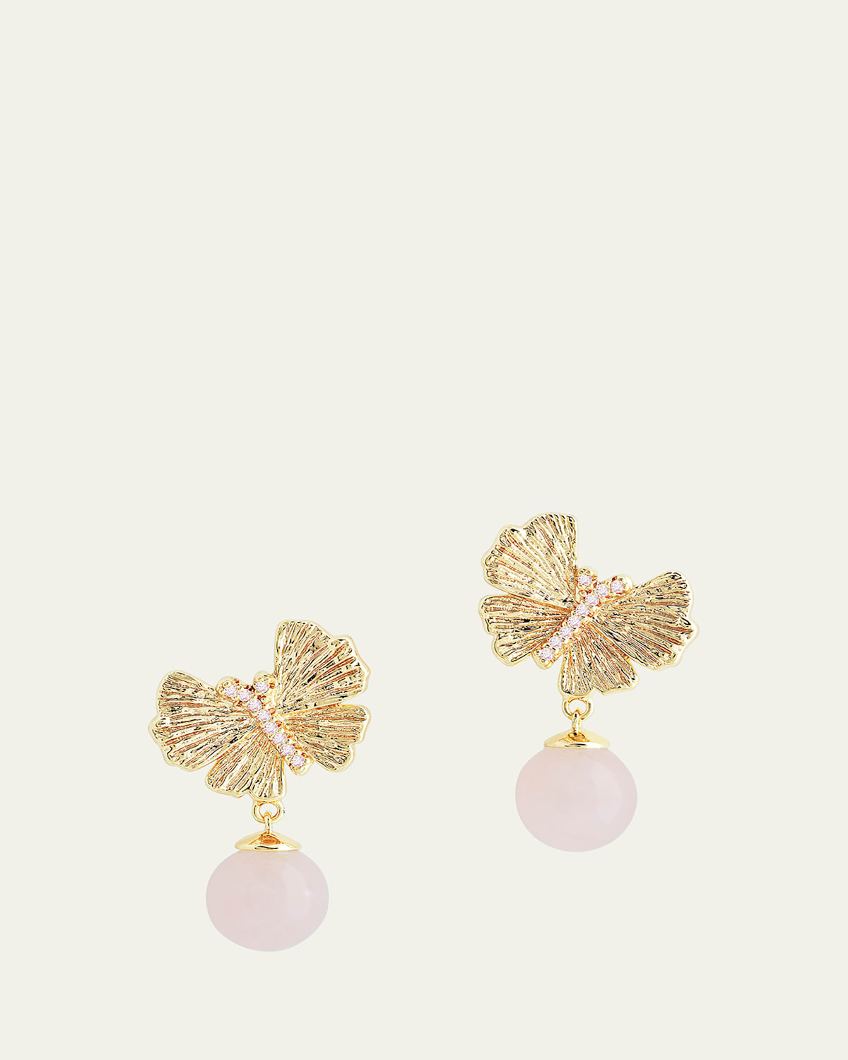 Anabel Aram Jewelry drop earrings 18karat goldplated brass Pink Quartz gemstones Cubic zirconia stones Approx. 0.7"L x 0.5"W For pierced ears Imported