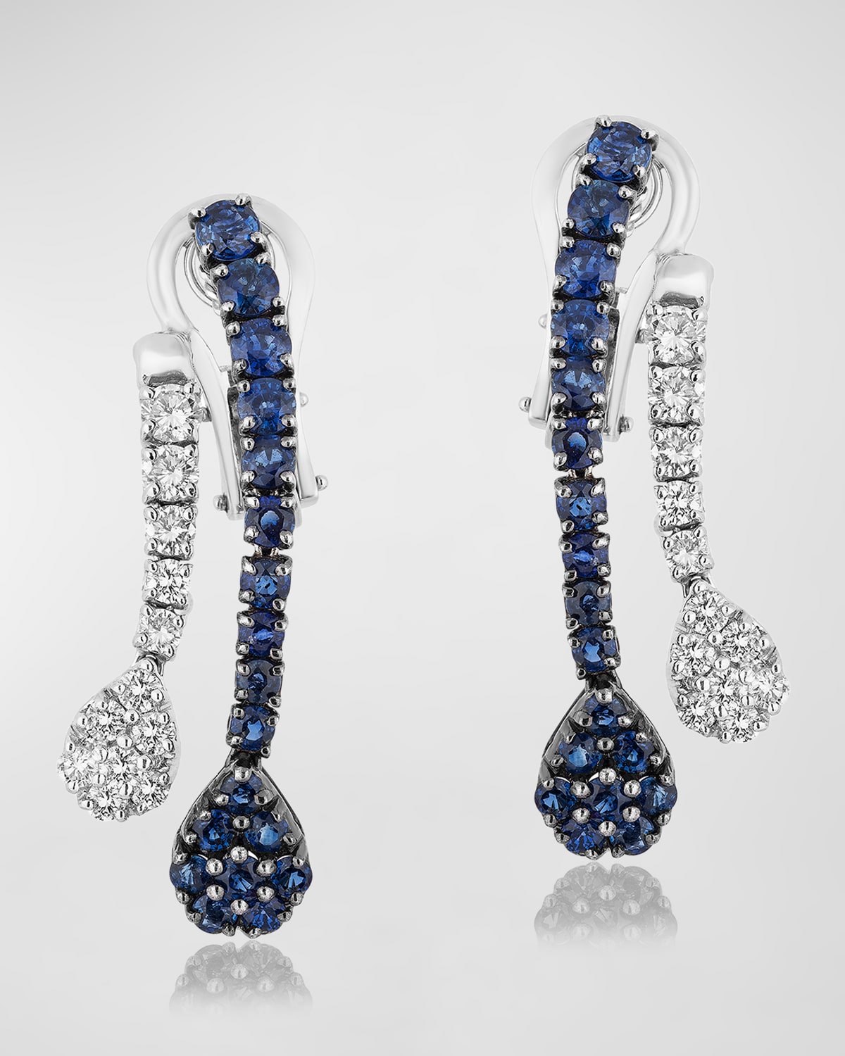 18K White Gold Blue Sapphire and Diamond Double Statement Earrings