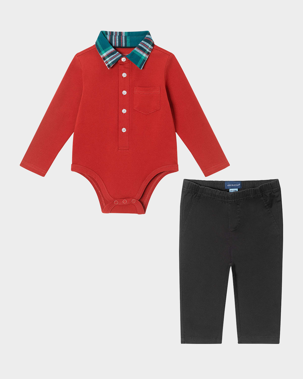 Boy's Holiday Polo Bodysuit W/ Pants Set, Size Newborn-24M