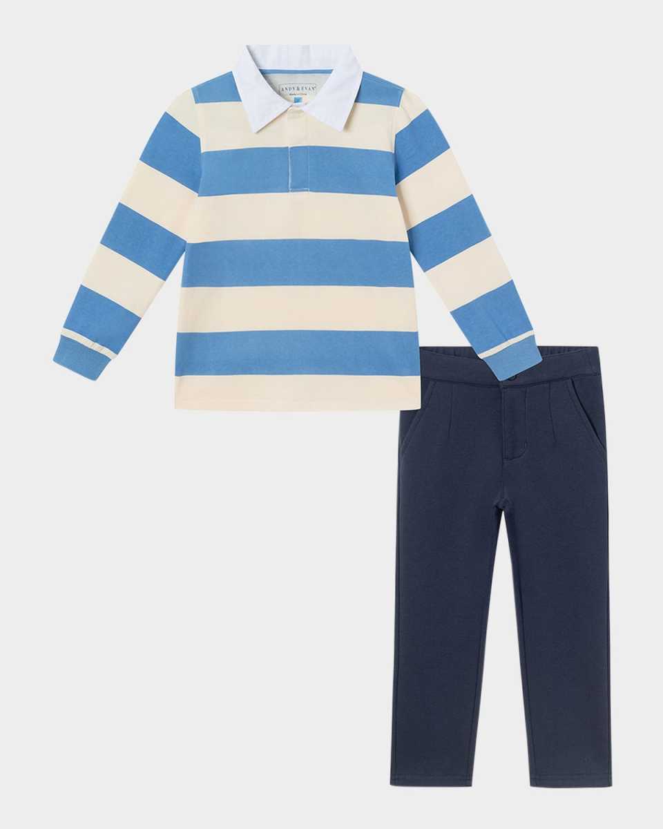 Boy's Striped Rugby Shirt & Pants Set, Size 2T-8