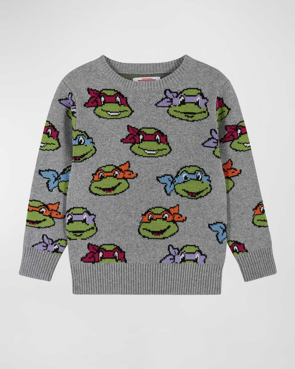 Boy's Turtles Intarsia Jacquard Sweater, Size 2-7