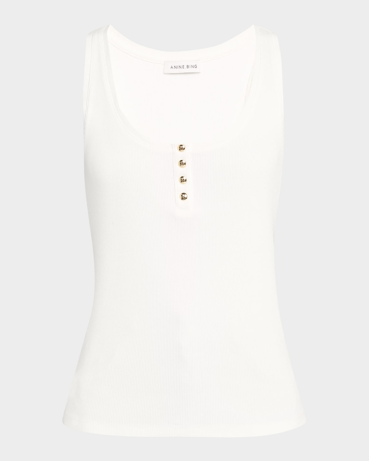 ANINE BING "Alessia" ribbedknit tank top Scoop neckline with buttons Sleeveless Easy fit Hem sits at the hip Pullover style Cotton Machine wash cold Imported