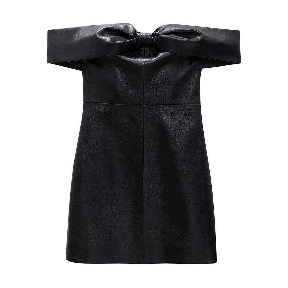 black strapless bow detailing thigh length zip fastening