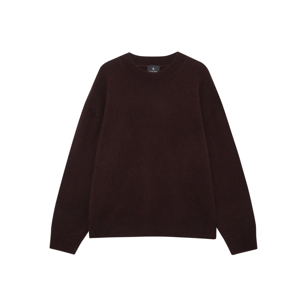 deep brown cashmere crew neck long sleeves ribbed trims