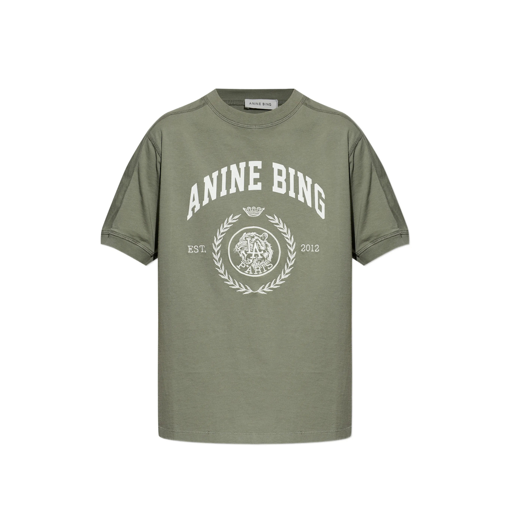 washed sage graphic print crew neck short sleeves topstitch detail cotton