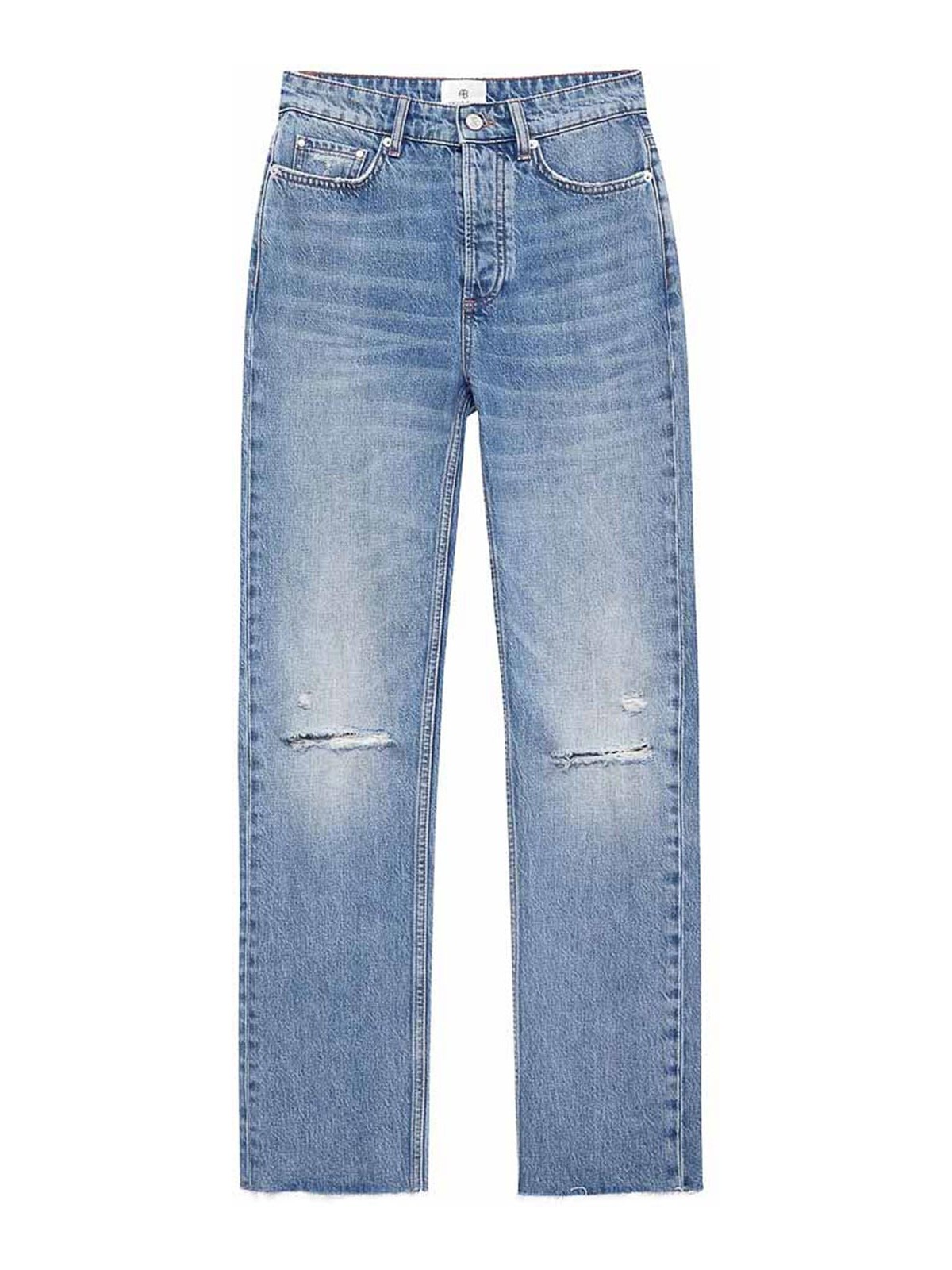 Passants de ceinture bleus boutonnés et zippés classiques à cinq poches